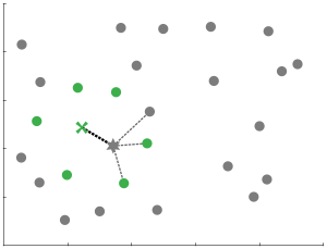 We could stop there and recommend that book to John. But the odds that it is a good choice are low, so we check using an algorithm called “k-nearest neighbor.” This algorithm finds the k books that are most similar to the book we’re trying to categorize. Then it counts how many of those k books are on the shelf, how many aren’t, and how many are unknowns. If the majority belong on the shelf, then that’s a pretty good indication that the book mBG chose does too, and so the system recommends it to John.